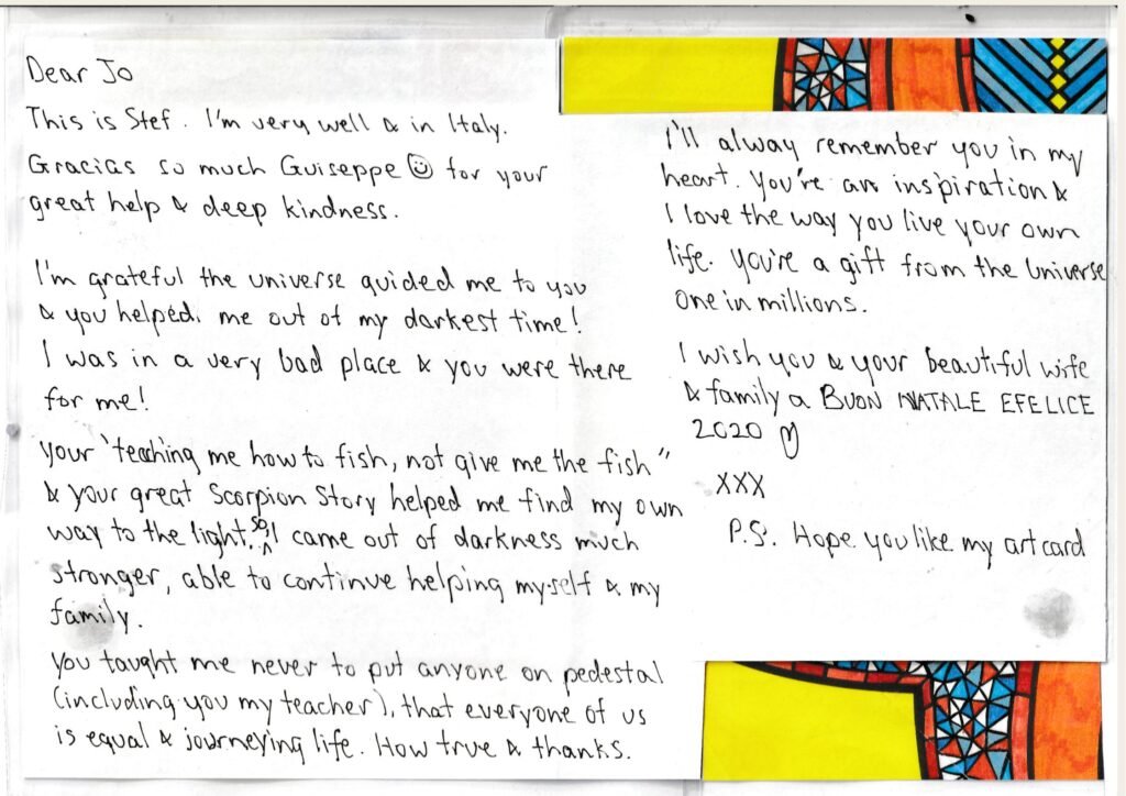 Yet what transformed me most was volunteering with homeless street children in Melbourne. Their courage and resilience awakened something in me. With both trepidation and hope, I chose what Scott Peck called “the road less travelled.” I shifted from my corporate life and returned to university to pursue a broader and more integrated education – in counselling, philosophy, psychology, and spirituality – while deepening my spiritual practice in sacred places and monasteries.